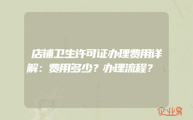 - 店铺卫生许可证办理费用详解:费用多少?办理流程?