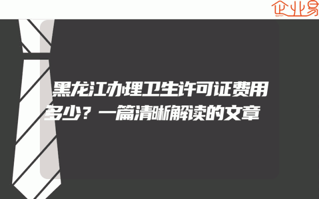 - 黑龙江办理卫生许可证费用多少?一篇清晰解读的文章