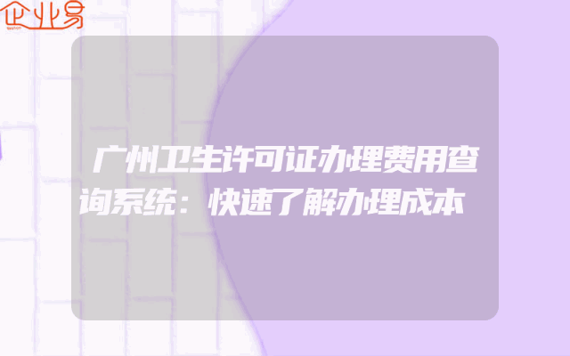 - 广州卫生许可证办理费用查询系统:快速了解办理成本