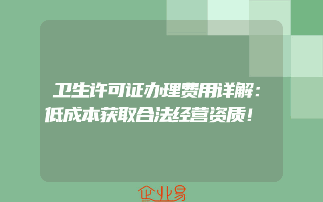 - 卫生许可证办理费用详解:低成本获取合法经营资质!