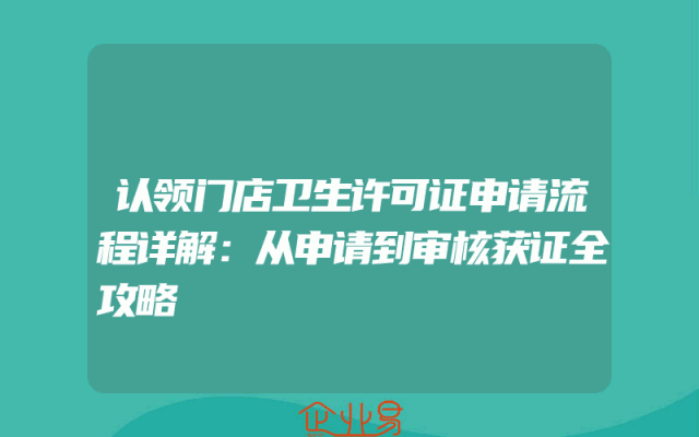 - 认领门店卫生许可证申请流程详解:从申请到审核获证全攻略