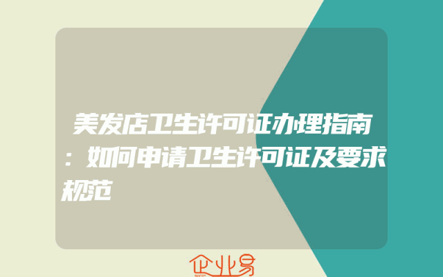 - 美发店卫生许可证办理指南:如何申请卫生许可证及要求规范