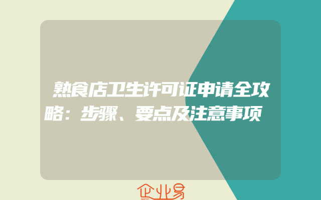 - 熟食店卫生许可证申请全攻略:步骤、要点及注意事项