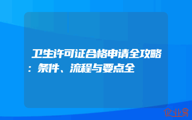 - 卫生许可证合格申请全攻略:条件、流程与要点全
