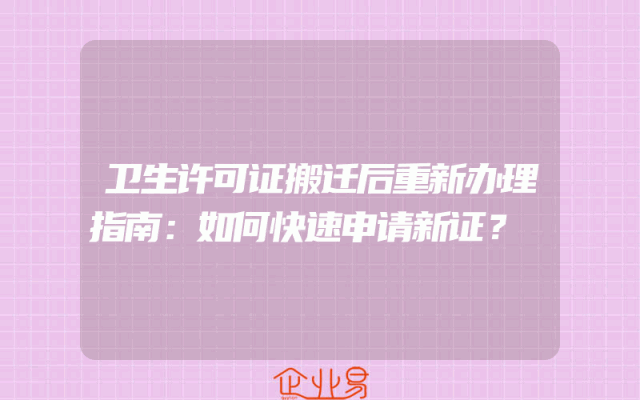 - 卫生许可证搬迁后重新办理指南:如何快速申请新证?