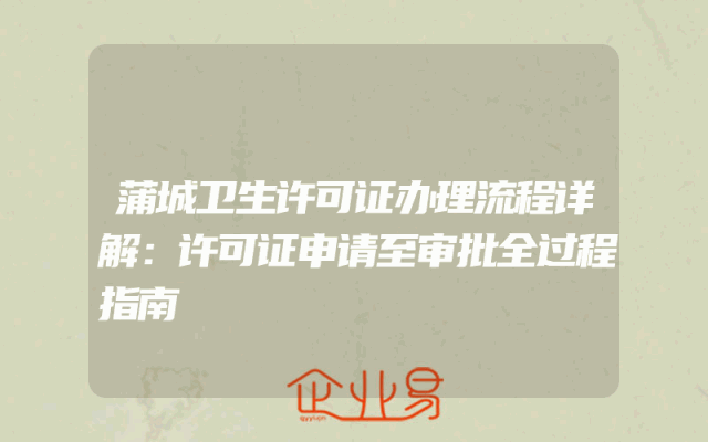 - 蒲城卫生许可证办理流程详解:许可证申请至审批全过程指南