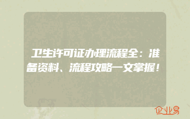 - 卫生许可证办理流程全:准备资料、流程攻略一文掌握!