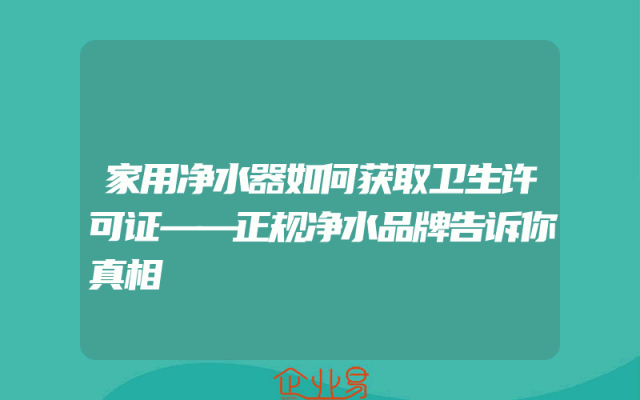 - 家用净水器如何获取卫生许可证——正规净水品牌告诉你真相