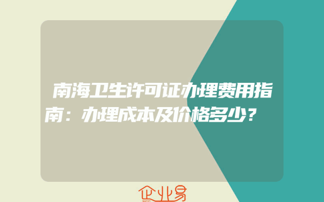 - 南海卫生许可证办理费用指南:办理成本及价格多少?
