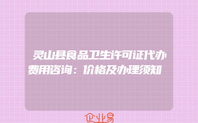 - 灵山县食品卫生许可证代办费用咨询:价格及办理须知