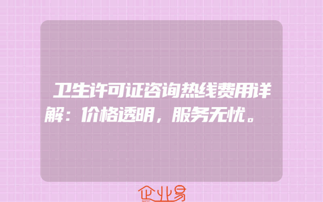 - 卫生许可证咨询热线费用详解:价格透明,服务无忧。