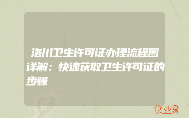 - 洛川卫生许可证办理流程图详解:快速获取卫生许可证的步骤