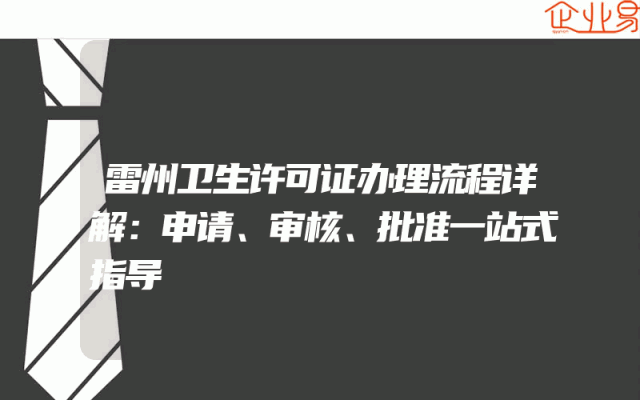 - 雷州卫生许可证办理流程详解:申请、审核、批准一站式指导