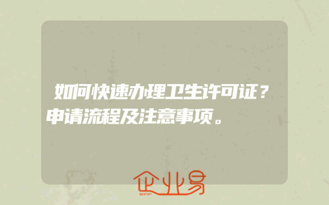 - 如何快速办理卫生许可证?申请流程及注意事项。