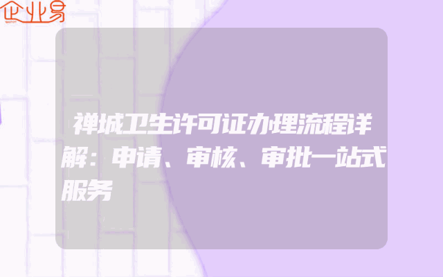 - 禅城卫生许可证办理流程详解:申请、审核、审批一站式服务