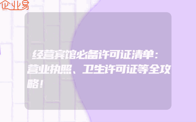 - 经营宾馆必备许可证清单:营业执照、卫生许可证等全攻略!