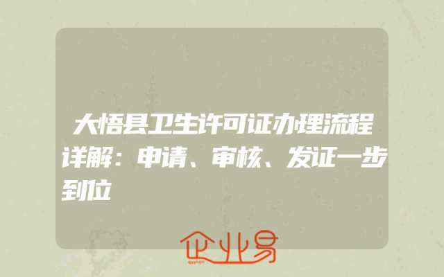 - 大悟县卫生许可证办理流程详解:申请、审核、发证一步到位