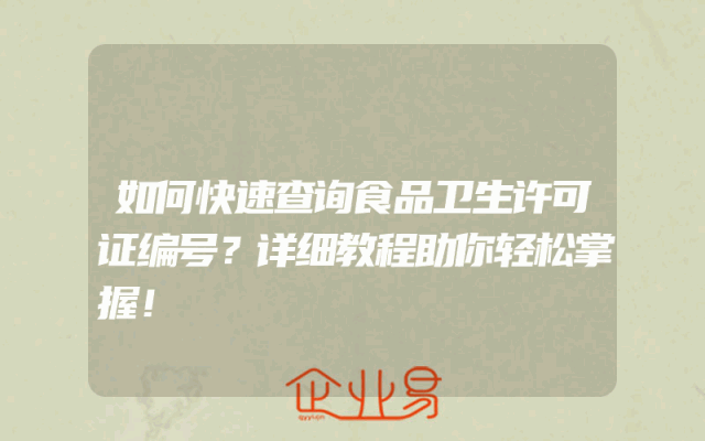 - 如何快速查询食品卫生许可证编号?详细教程助你轻松掌握!