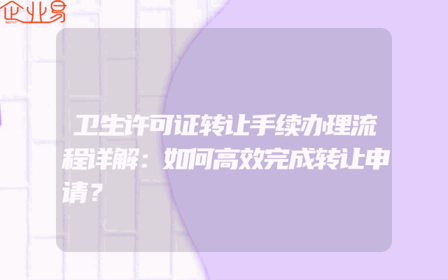 - 卫生许可证转让手续办理流程详解:如何高效完成转让申请?