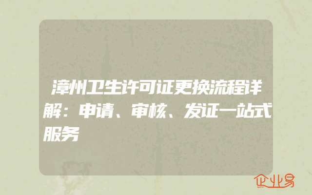 - 漳州卫生许可证更换流程详解:申请、审核、发证一站式服务