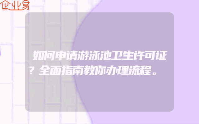 - 如何申请游泳池卫生许可证?全面指南教你办理流程。