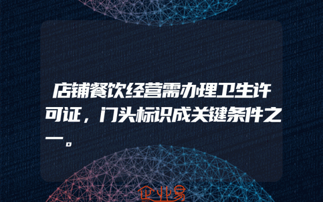 - 店铺餐饮经营需办理卫生许可证,门头标识成关键条件之一。