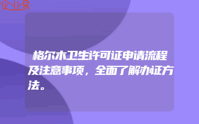 - 格尔木卫生许可证申请流程及注意事项,全面了解办证方法。