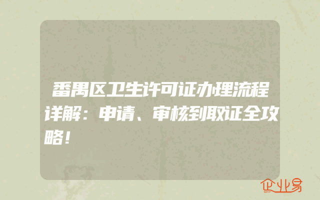 - 番禺区卫生许可证办理流程详解:申请、审核到取证全攻略!