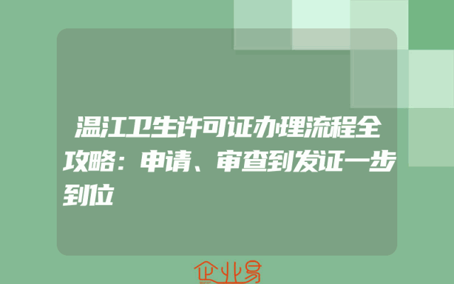 - 温江卫生许可证办理流程全攻略:申请、审查到发证一步到位