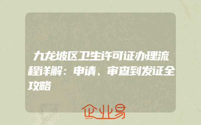 - 九龙坡区卫生许可证办理流程详解:申请、审查到发证全攻略