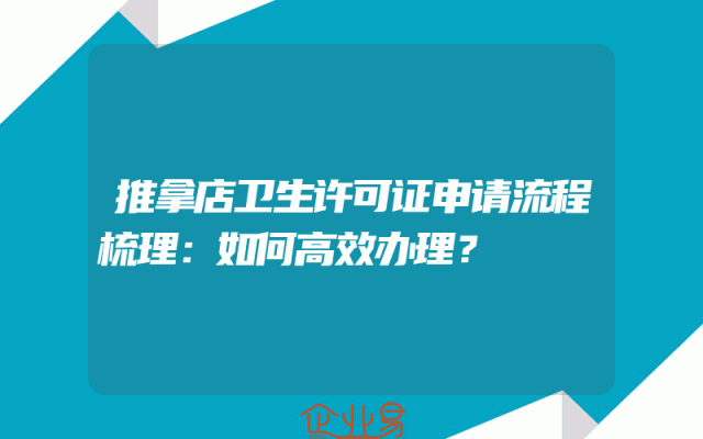 - 推拿店卫生许可证申请流程梳理:如何高效办理?