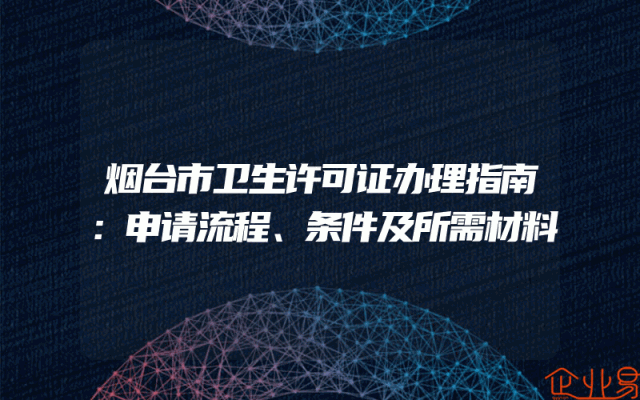 - 烟台市卫生许可证办理指南:申请流程、条件及所需材料