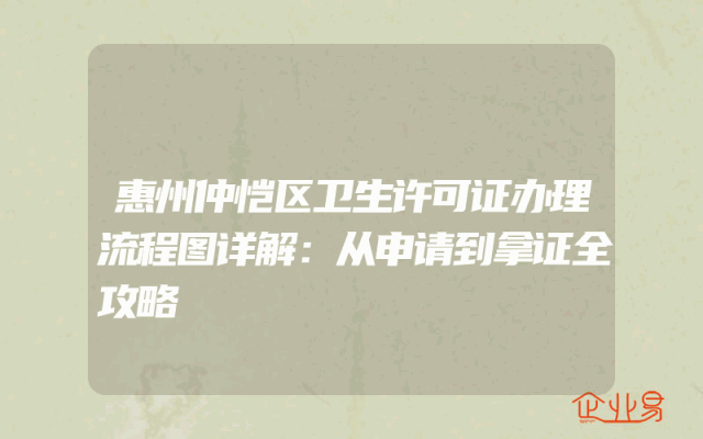 - 惠州仲恺区卫生许可证办理流程图详解:从申请到拿证全攻略