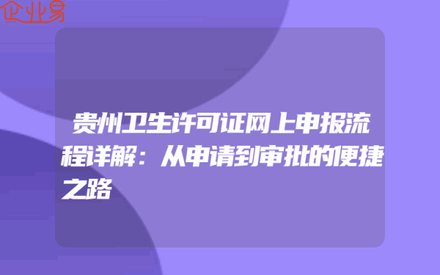 - 贵州卫生许可证网上申报流程详解:从申请到审批的便捷之路