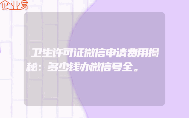- 卫生许可证微信申请费用揭秘:多少钱办微信号全。
