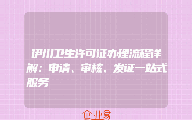 - 伊川卫生许可证办理流程详解:申请、审核、发证一站式服务