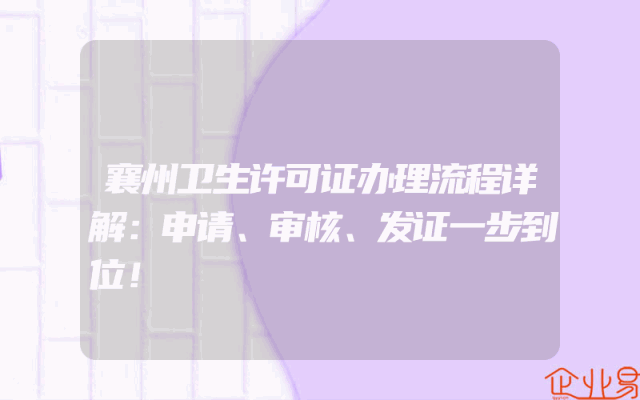 - 襄州卫生许可证办理流程详解:申请、审核、发证一步到位!