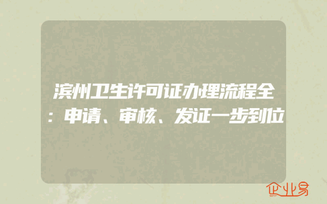 - 滨州卫生许可证办理流程全:申请、审核、发证一步到位