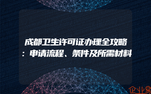 - 成都卫生许可证办理全攻略:申请流程、条件及所需材料