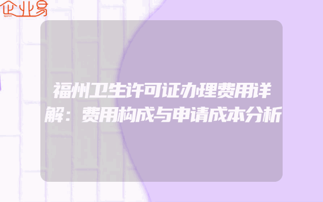 - 福州卫生许可证办理费用详解:费用构成与申请成本分析