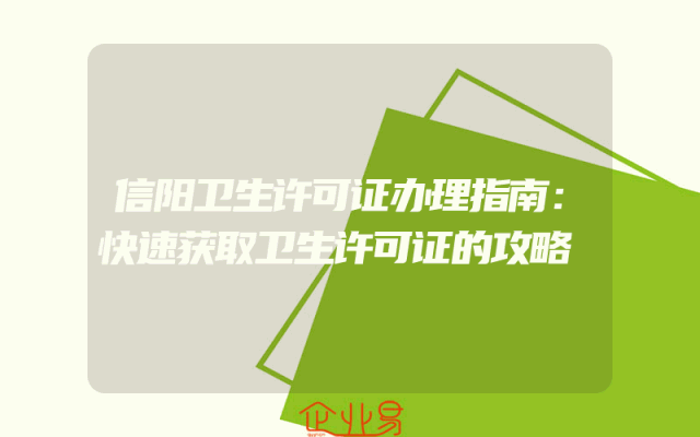 - 信阳卫生许可证办理指南:快速获取卫生许可证的攻略