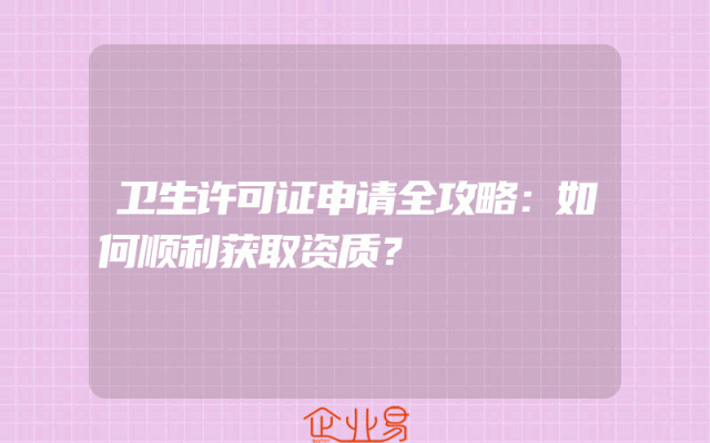 - 卫生许可证申请全攻略:如何顺利获取资质?