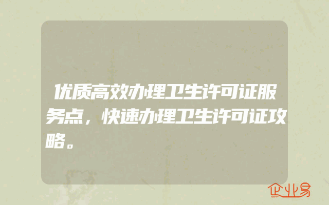 - 优质高效办理卫生许可证服务点,快速办理卫生许可证攻略。