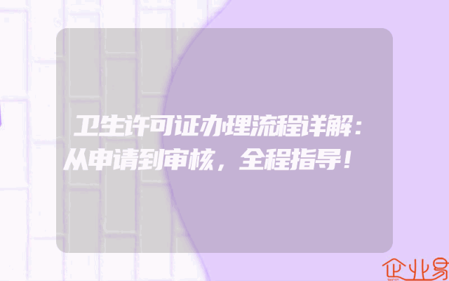 - 卫生许可证办理流程详解:从申请到审核,全程指导!