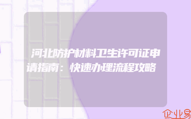 - 河北防护材料卫生许可证申请指南:快速办理流程攻略