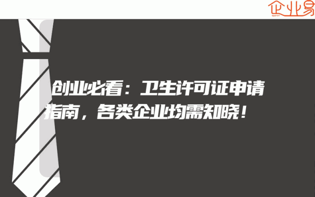 - 创业必看:卫生许可证申请指南,各类企业均需知晓!