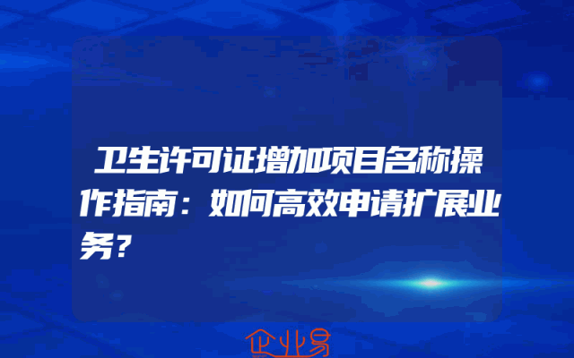 - 卫生许可证增加项目名称操作指南:如何高效申请扩展业务?
