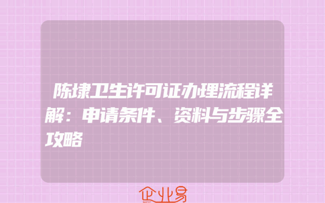 - 陈埭卫生许可证办理流程详解:申请条件、资料与步骤全攻略