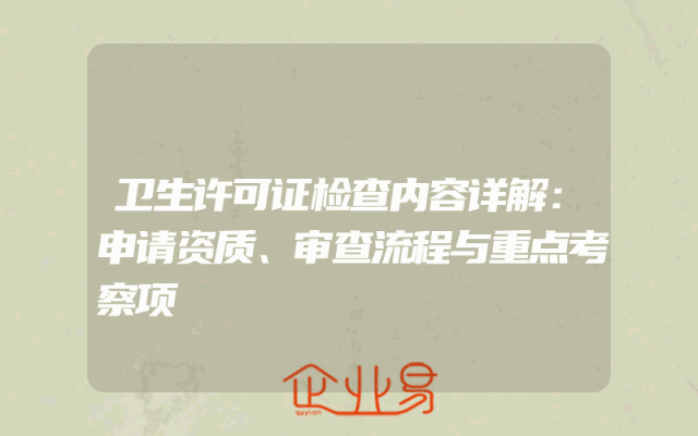 - 卫生许可证检查内容详解:申请资质、审查流程与重点考察项