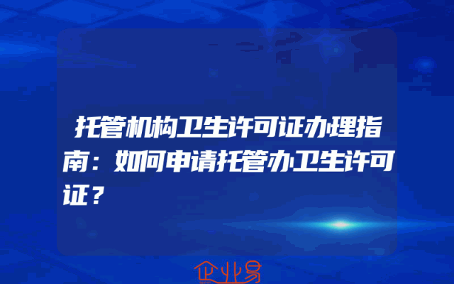 - 托管机构卫生许可证办理指南:如何申请托管办卫生许可证?